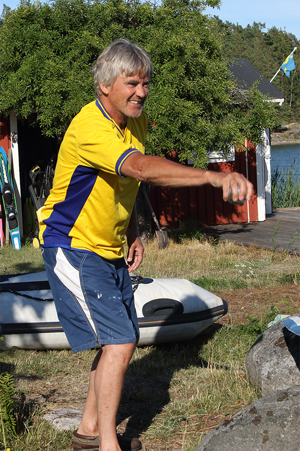 att kasta två bouleklot mot ett rör som har slagits ner i