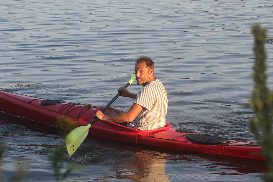 att ta sig runt Fågelskäret paddlandes kajak. Vid rundningen reses paddeln upp