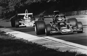 Regazzoni. När även denne måste lämna in är det Ronnie - som jobbat sig upp
