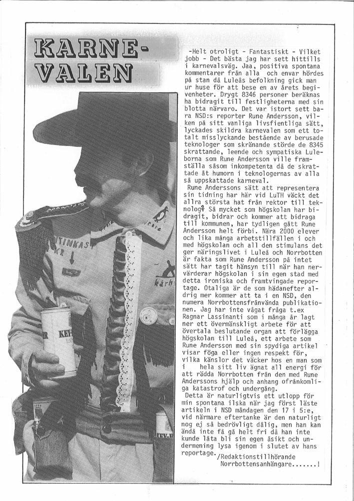 KÅRTEGEN vid LuTH 1982 Denna sida uppdaterades senast 2010-10-14. När Tekniska Högskolan i Luleå våren 1982 firade sitt 10-årsjubileum passade teknologerna på att arrangera en Kårtege som fick ringla sig runt på stadens gator.