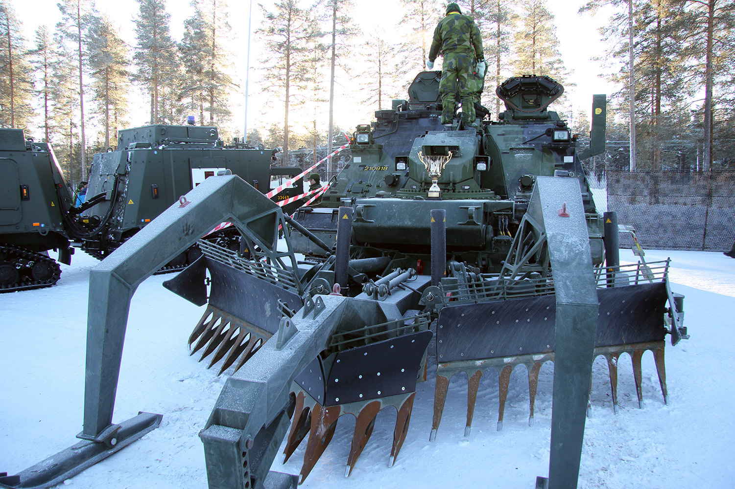 varvid hans röjningstät och främre fordon bekämpades med artilleri (3) i