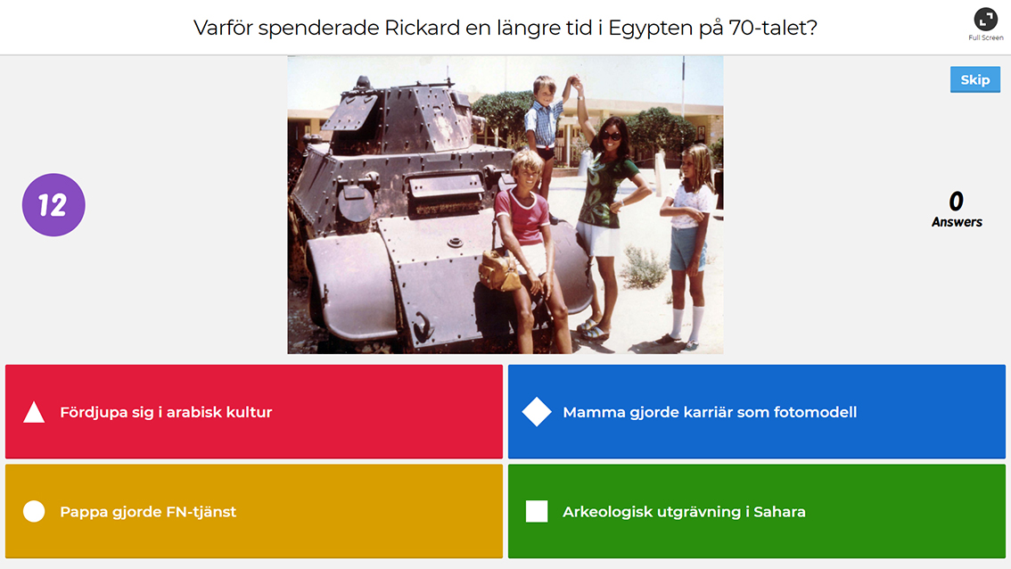 "Den gamle gubben" förärades en Kahoot av sin dotter och svärson - ett mycket uppskattat intitiativ och en hård batalj för släkten... Denna Kahoot ligger även som "Public" på www - bara att logga in å köra!