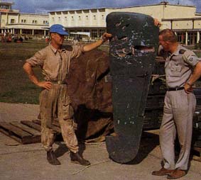 Den nyss nämnda granatkastaren ställde till problem för de framryckande indiska FN-trupperna och den E-ville baserade roten fick i uppdrag att förstöra denna. Flygplanen gjordes i ordning och vi skulle iväg. Men... ...mitt flygplan gick inte igång. Flera försök gjordes - till slut beslöt vi att Nocke skulle flyga ensam - den aktuella målarean var liten och det gällde att slå till innan granatkastaren hade förflyttats ut - då gällde nya order och måldefinitioner! Med sorg i hjärtat såg jag när Nockes 29:a lättade - det var det, tänkte jag... då knackade min flygtekniker på sidan och sa´ "försök nu igen - jag har knackat på startrelät". Sagt och gjort och nu hördes det välbekanta ljudet av en startande jetmotor. Under motorstarten fick jag radiokontakt med Nocke som gick mot området och rekognoserade målet. Snabbt var jag i luften och fick rapport om att granatkastarenheten började röra på sig. Det var en lastbil med trupp om 20 man plus en jeep som drog själva granatkastaren. "Jag lägger en salva bredvid bilarna och försöker få stopp på dem." Nocke - hedermannen - förlorade inte fattningen, kan vi undvika så skall vi inte skada människor resonerade han i sann svensk FN-anda. Mycket riktigt, bilarna bromsade in - truppen lämnade lastbilen och sprang in i bushen. Jeepfolket körde jeepen av vägen och försökte dölja den. När jag kom fram efter Nockes första salva vid sidan om bilarna gick vi in i helt vanliga skolmässiga skjutvarv och med akan som vapen blev ganska snart fordonen förstörda - i varje fall brann dom ordentligt!! Det kunde vi se från luften. Indierna som på avstånd sett vår verksamhet hoppade, vinkade och applåderade när vi flög över dom - nu var vägen öppen mot Kolwezi! Naturligtvis finns det mycket mer intressant att berätta om, men just beskrivna händelser var väl de "hetaste" att ta fram. F22:s insatser var betydande för händelsutvecklingen i Kongo. Med "svensk" operationsledning blev besluten om insatserna väl avvägda och inga övergrepp på människor skedde. Metodiskt avväpnades Katanga på flygplan och materiel utan några kända personskador. Personal stod rycken för en ganska tuff krigssituation. Vår utbildning hemifrån kunde inte tolkas på annat sätt än att den var verklighetsanpassad och höll fint under de stundtals mycket svåra företagen. Speciell eloge måste ges våra värnpliktiga flygmekar som efter grundutbildningen hemma, frivilligt sökte FN-tjänst. De var yrkeskunniga, ansvarsfulla och hängivna uppgiften att skapa fred. Tunnan, vår flygande plattform, var helt suverän. Den klarade med glans av att deltaga i krigshandlingar trots skottskador och intensiv flygverksamhet. Det var ingen som tvekade att flyga över vidsträckta områden i ett ociviliserat Afrika - i hade uppdrag 50-60 mil från Kamina. Där flög vi med stor tilltro till flygplanet med en motor, en radio med 10 kanaler och som enda navigeringshjälpmedel en gammal "vev" ADF som med förtjusning låste på de frekventa åskmolnen. Någon räddningstjänst i egentlig mening fanns inte annat än i närområdet kring Kamina. Bland stammarna i bushen fanns ett flertal som var kannibaler! Det kändes trots allt tryggt att flyga med TUNNAN därnere! Efteråt känner man en tillfredsställelse över jobbet vi gjorde och en stor ödmjukhet att vi fick vara med i dessa FN-operationer.