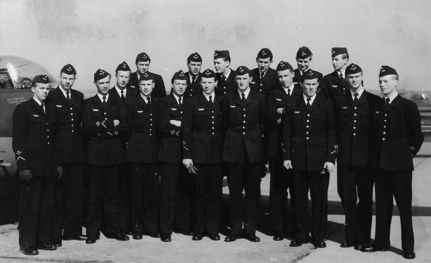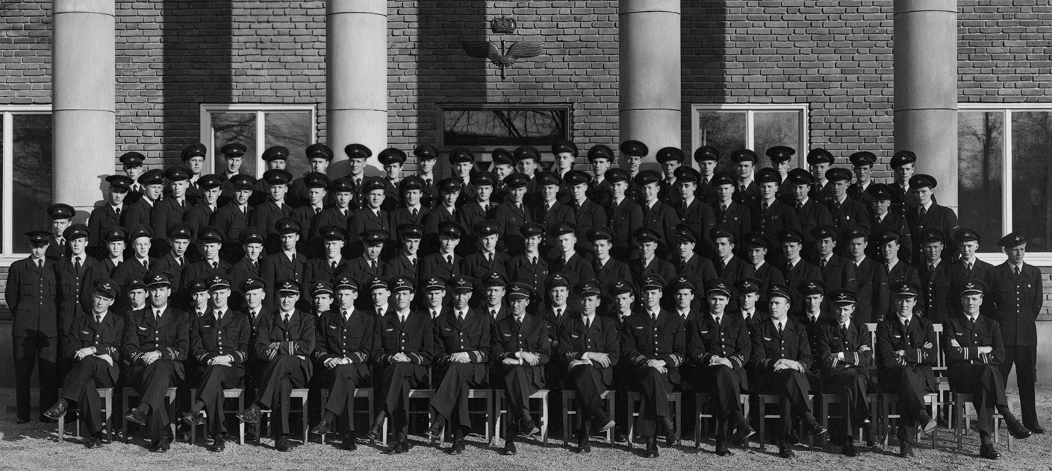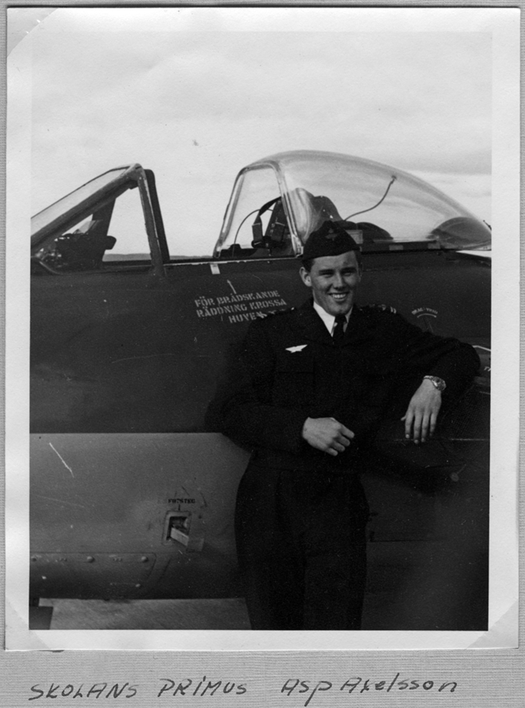 Bilden ovan visar aspiranterna som fått sina vingar vid examen på Kungliga Krigsflygskolan 1952 - Sten Axelsson "kursetta" (enligt uppgift) står som nr 11 från höger i andra raden.