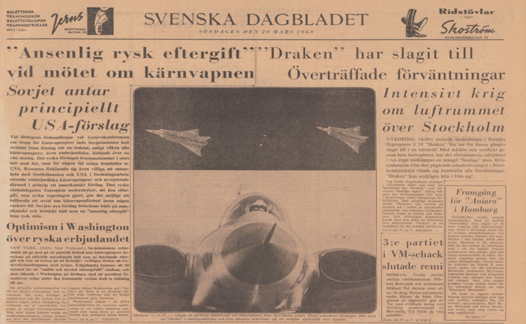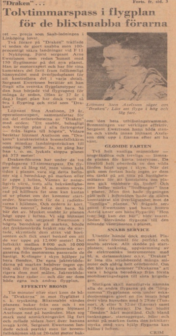 1960 var försvarets nya ”hemliga vapen” redo att delta i flygövningar under fältmässiga förhållanden och det nya överljudsplanet visade sig överträffa alla förväntningar. Under en eskaderövning i Stockholmstrakten i mars samma år, lät operationsexperten Sten Axelsson sig intervjuas av SvD: ”Ett snabbt, behagligt och trevligt flygplan i alla fartregister – från lägsta till högsta”.
