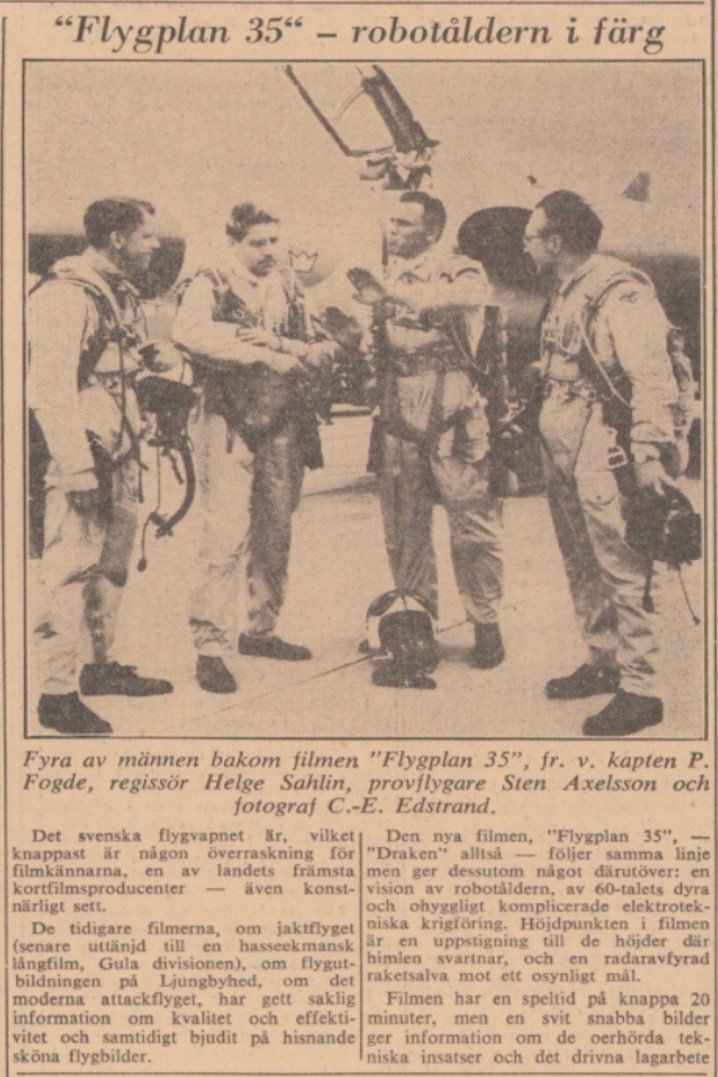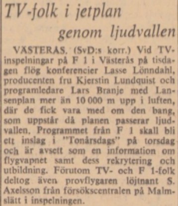 1960 blev överhuvudtaget ett händelserikt år för Sten och han anlitades upprepade gånger som uppvisningspilot i ”Draken” runt om i vårt avlånga land. Bl a filmades han mer än 10.000 m upp i luften när han med en ”bang” passerade genom ljudvallen. Inspelningen från F 1 i Västerås blev ett inslag i programmet ”Tonårsdags” och var avsett som en information om Flygvapnet, samt dess rekrytering och utbildning.